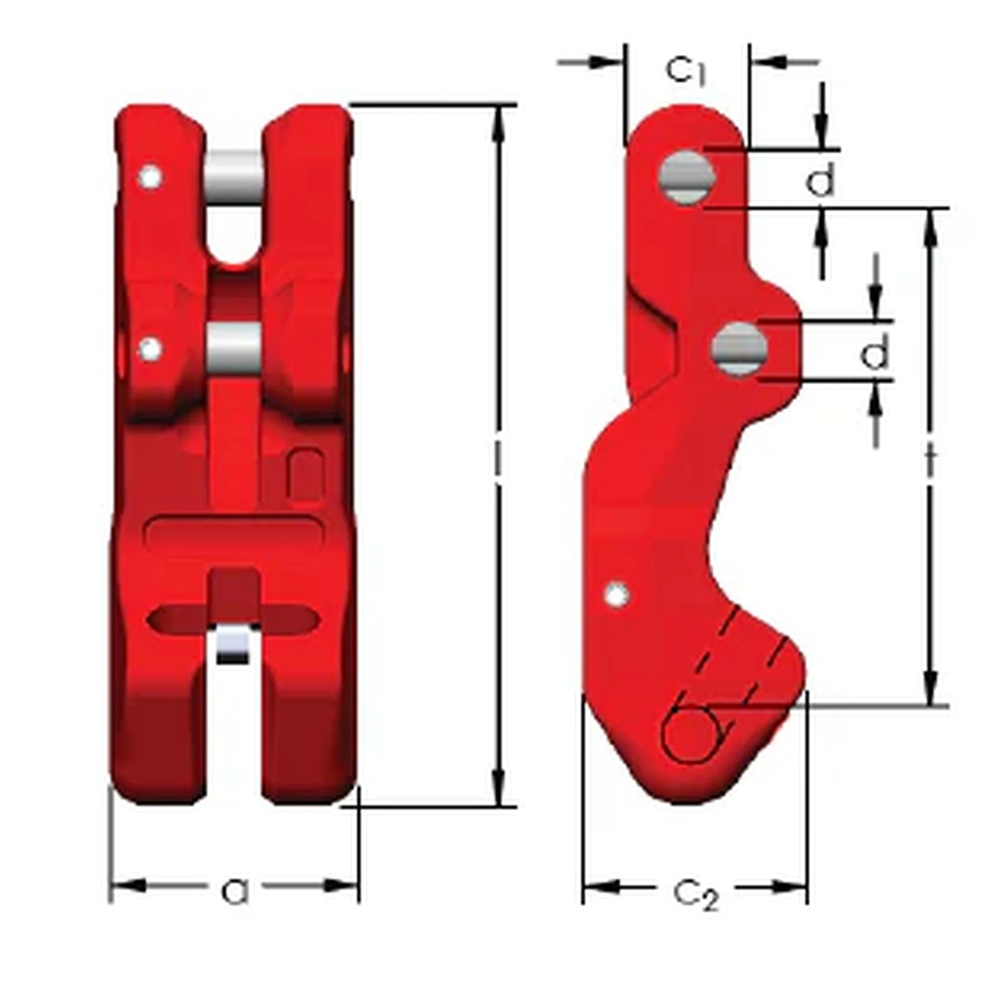 | Veľkosť | Nosnosť (WLL) | A | c1 | c2 | d | l | t | Hmotnosť |
