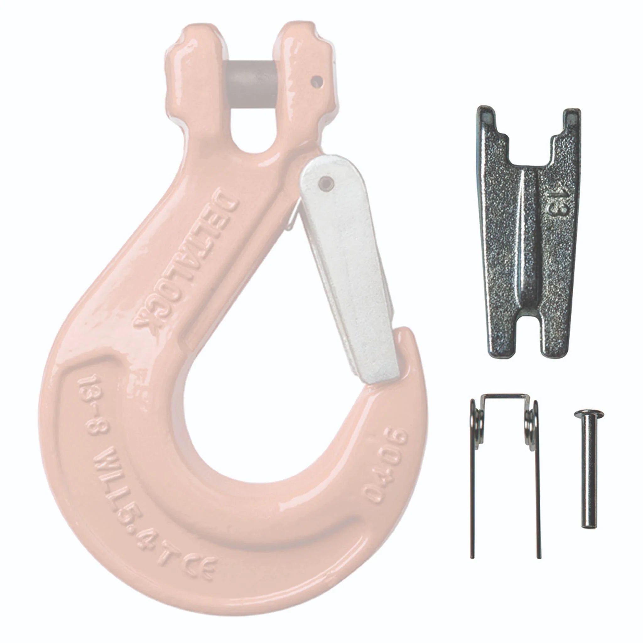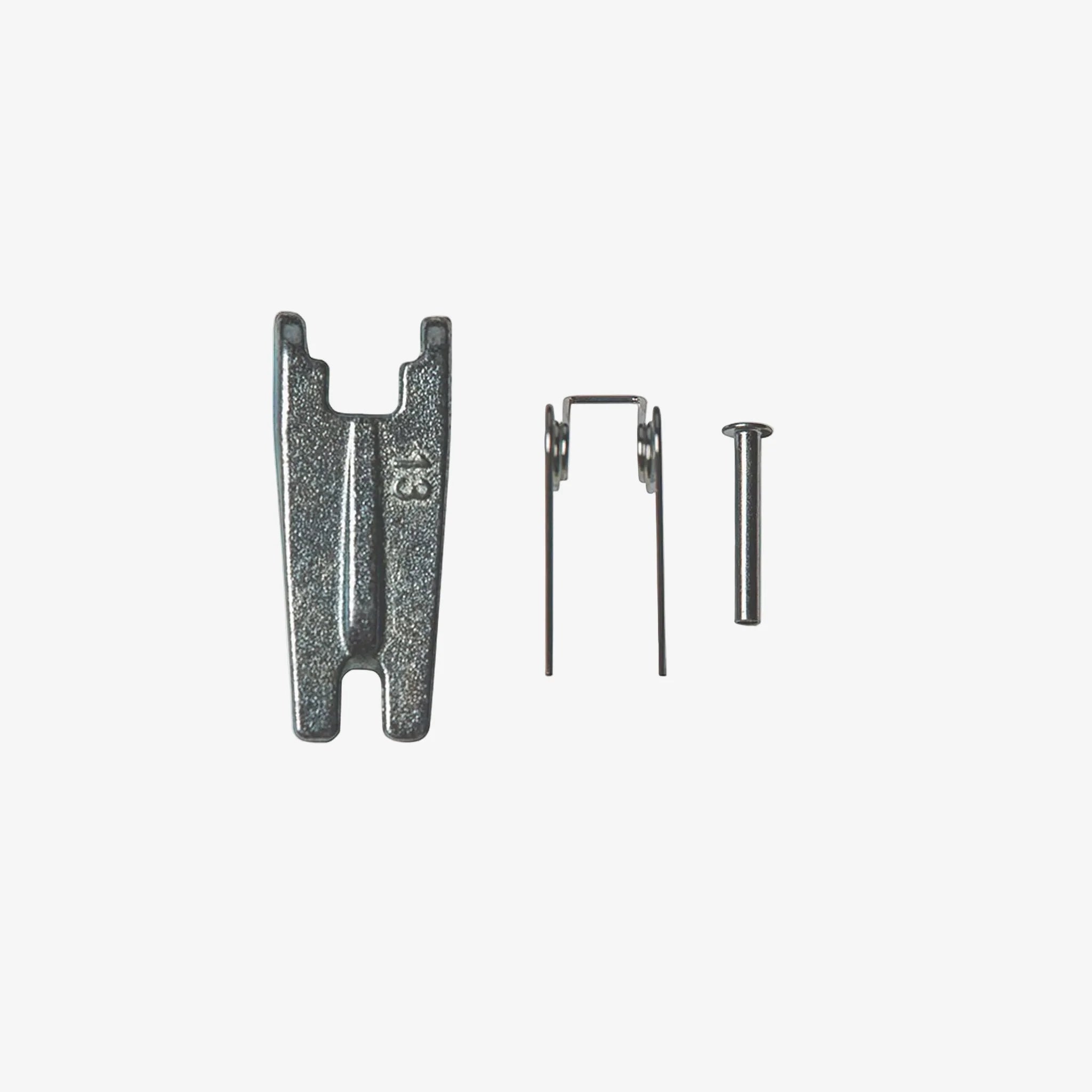 Náhradný diel pre hák s vidlicou a poistkou DELTA - opravná sada liate poistky, pružiny a čapu na opravu háku.