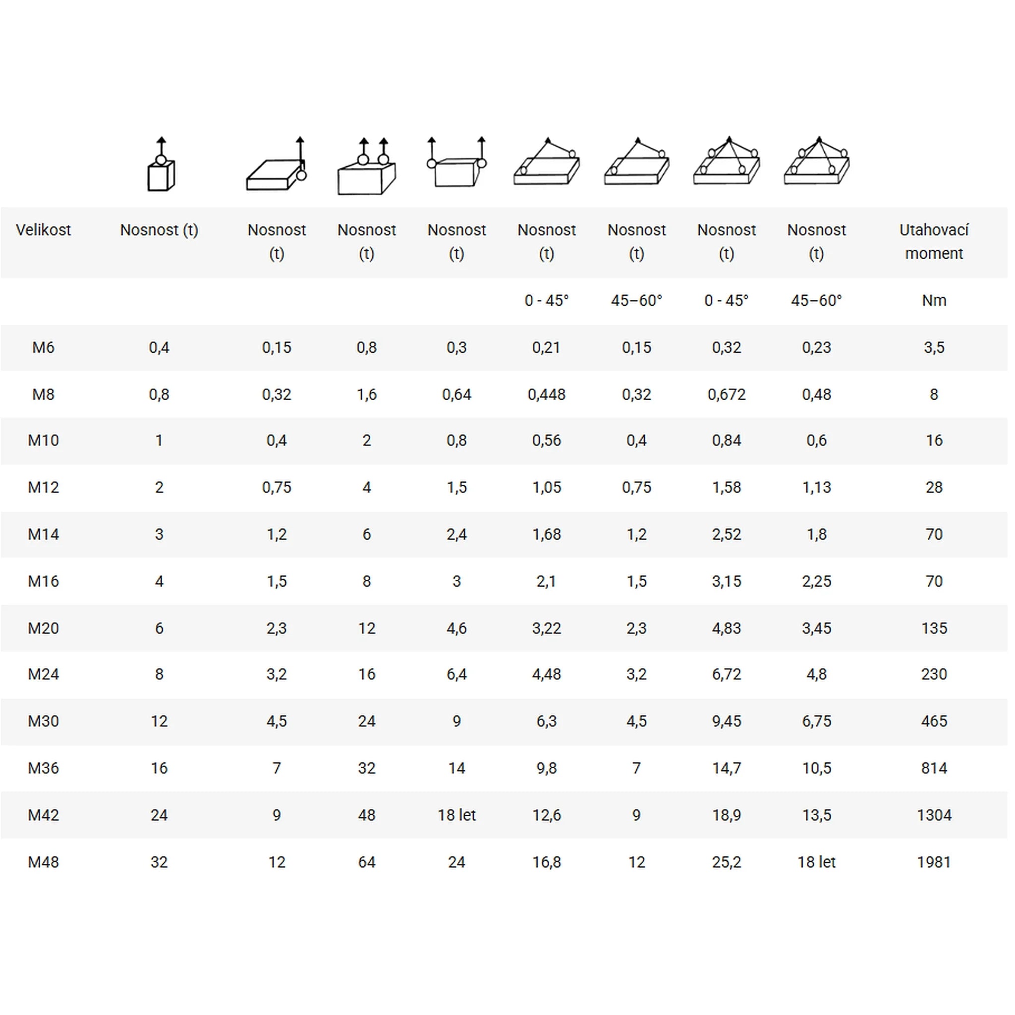 Nosnosť pre vertikálne zdvíhanie je vyznačená na oku.