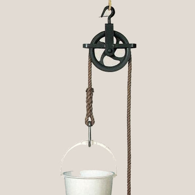 Stavebná kladka s hákom, ideálne na použitie s konopnými lanami, SEWOTA - Nemecko