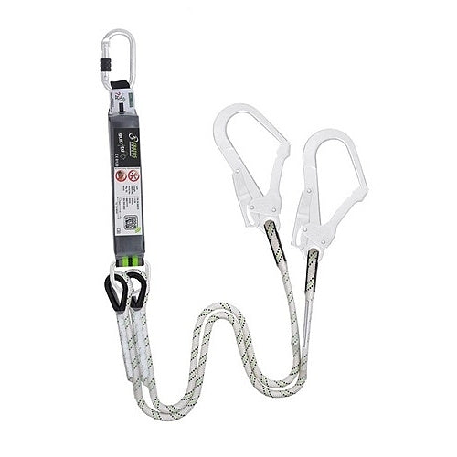 Vybavený je dvojitým spojovacím prostriedkom v tvare Y, ktorý slúži pre trvalé pripojenie vďaka dvom popruhom, 1 karabíne a 2 hákom.