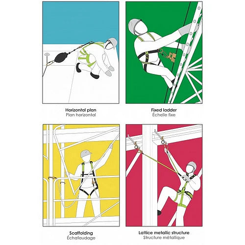 Použitie pri práci na lešení, šikmých strechách.