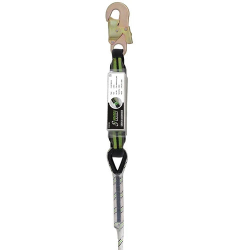 Dôležité varovanie: V návode/katalógovom liste je podstatné sledovať aj minimálnu bezpečnú voľnú výšku pod pracovníkom (tzv. clearance). Keďže má samotné lano s tlmičom dĺžku až 2 metre a pri páde sa tlmič vypára o ďalších cca 1,1–1,5 metra, musíte mať pod nohami dostatočný priestor (obvykle aspoň 5,5 až 6 metrov od kotevného bodu), aby ste bezpečne zastavili nad zemou.